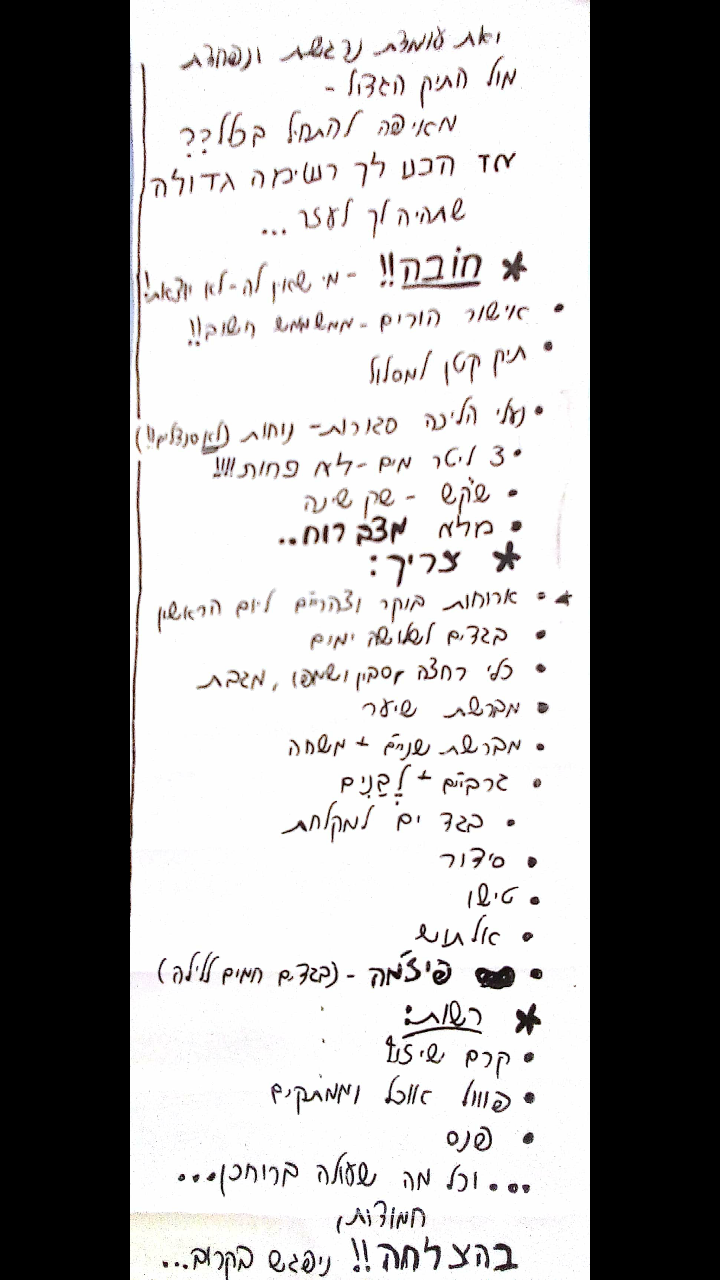 רשימת ציוד לסמינריון; סידור (בנים-תפילין) ❄ בגדים חמים מצעים (גם שמיכה וכרית) כלי רחצה מגבת מכנסיים / חצאיות לכל השבוע חו...