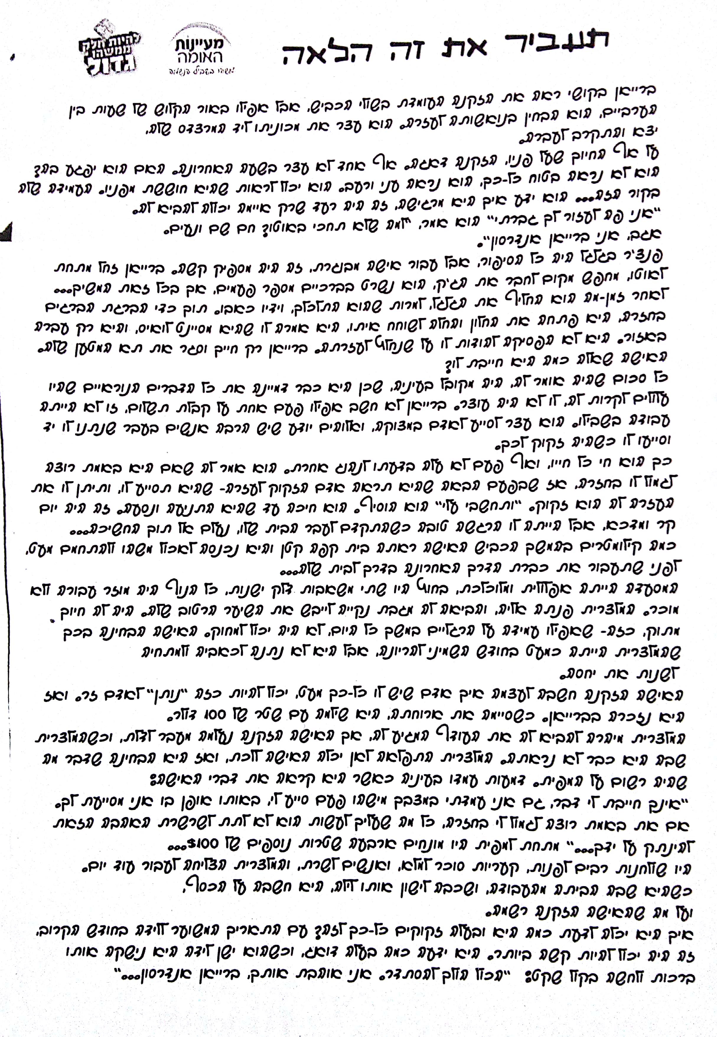 "אינך חייבת לי דבר, גם אני עמדתי במצבך מישהו פעם סייע לי,