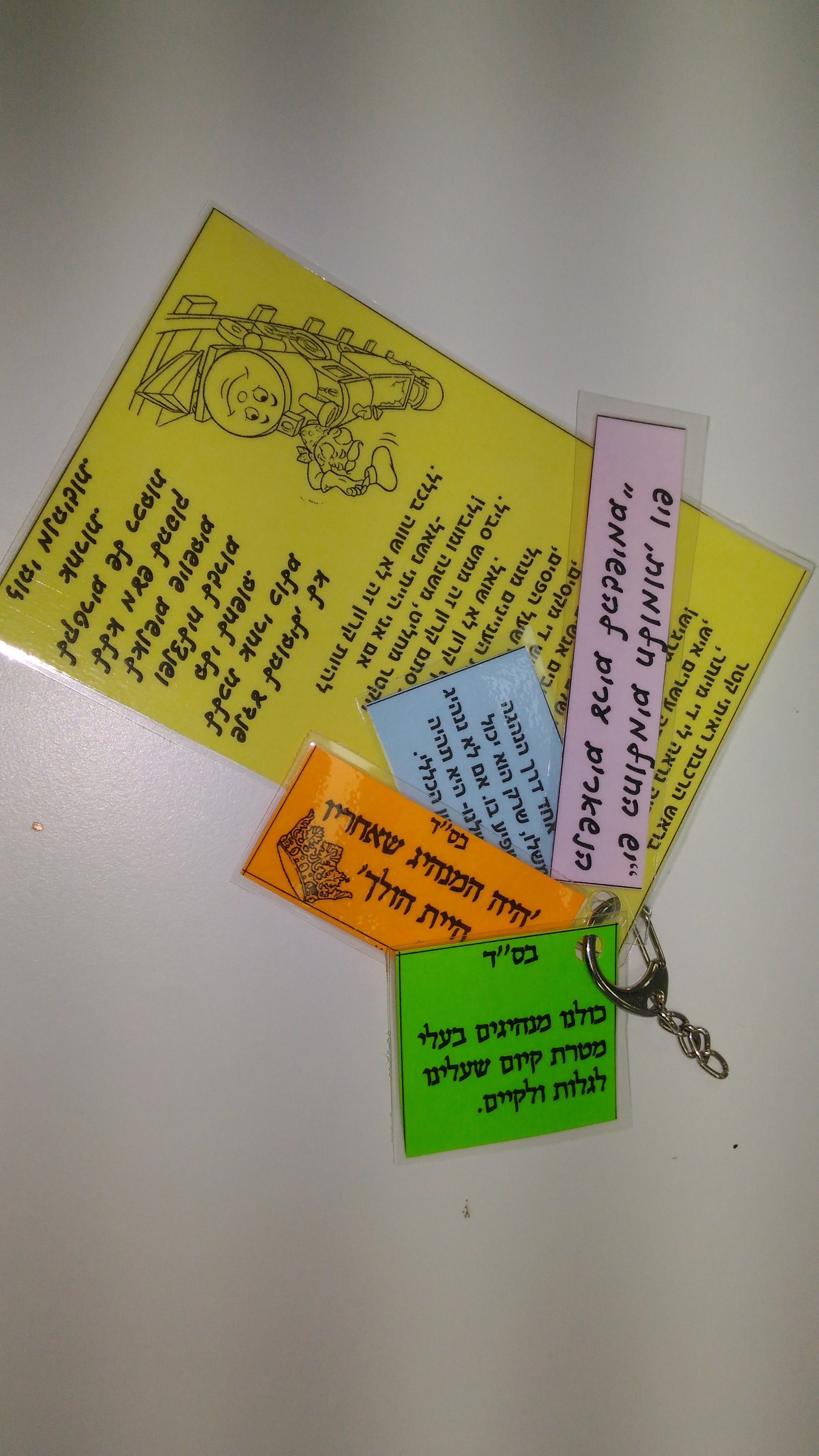 הפעולה בנויה בצורה כזו שכל חלק מסתכם במשפט\ צ'ופר. (ראו את הקבצים המצורפים). אני בחרתי להדפיס כל סיכום כזה ולניילן אותו, וככה בסיום הפעולה כל הצ'ופרים מתחברים למחזיק מפתחות צבעוני בנושא מנהיגות. (ראו תמונה...)