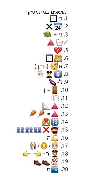 .1 בריבוע .2 לוח הכפל.3 ניצב.4 משולשים חופפים.5 שבר.6 משפחת מרובעים.7 אנך.8. -.9 חצי .10 דלתון.11 גליל.12 משולש ישר זווית.13 משולש שווה שוקיים.14 חיבור .15 רדיוס.16 חזקה.17 הפרש.18. -.19 מספר זוגי.20 רדיוס
