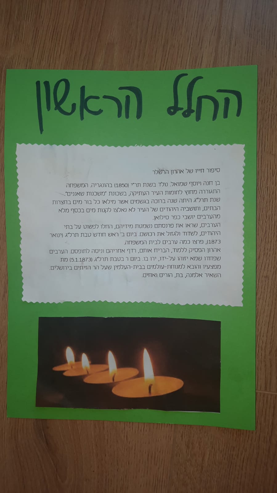 לאחר מכן נעבור ליום הזיכרון- נקריא את הקטע של אהרון הרשלר החלל הראשון של מערכת ישראל (נספח 1)
