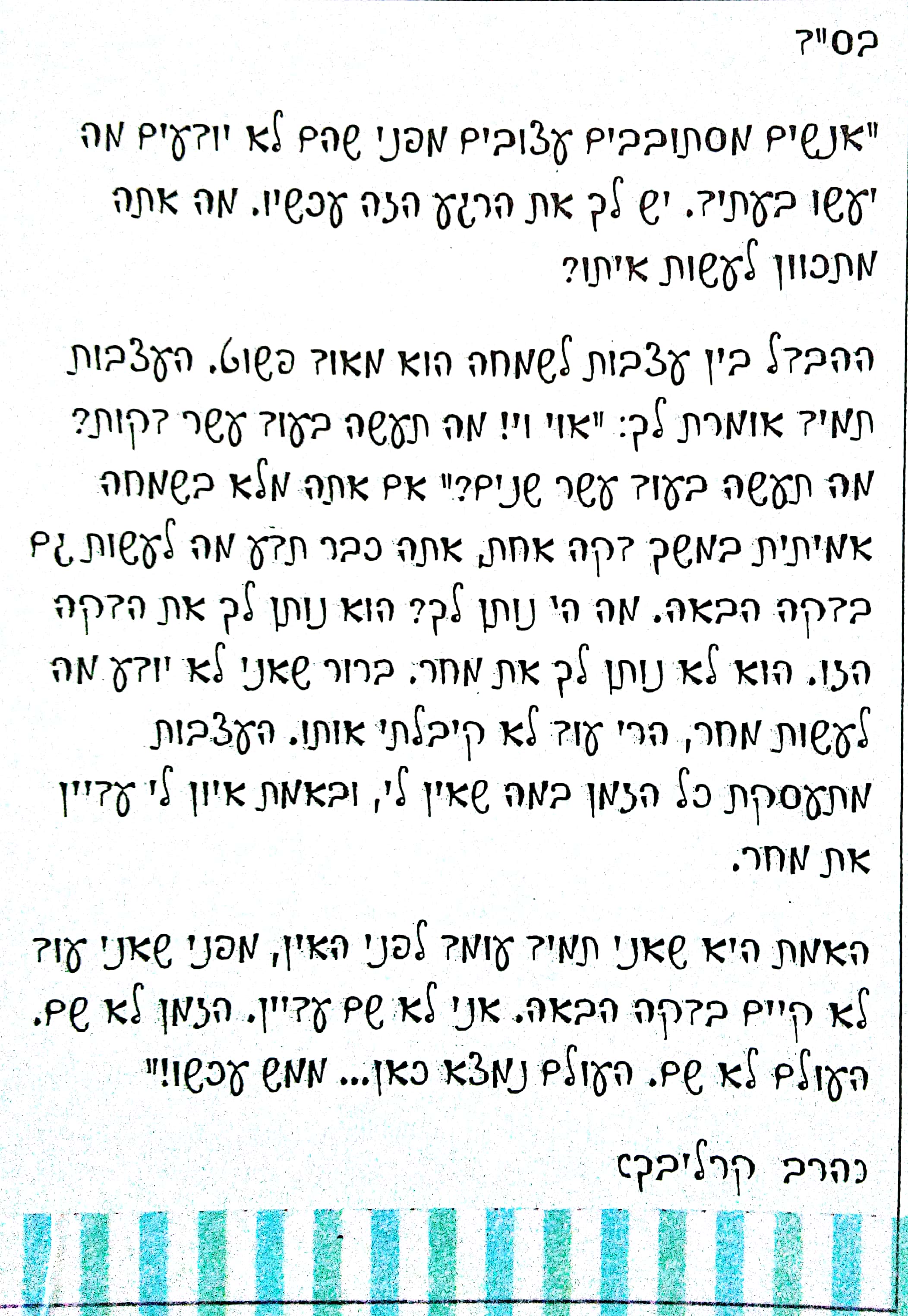 קוראים את הקטע של הרב קרליבך על השמחה (נספח).