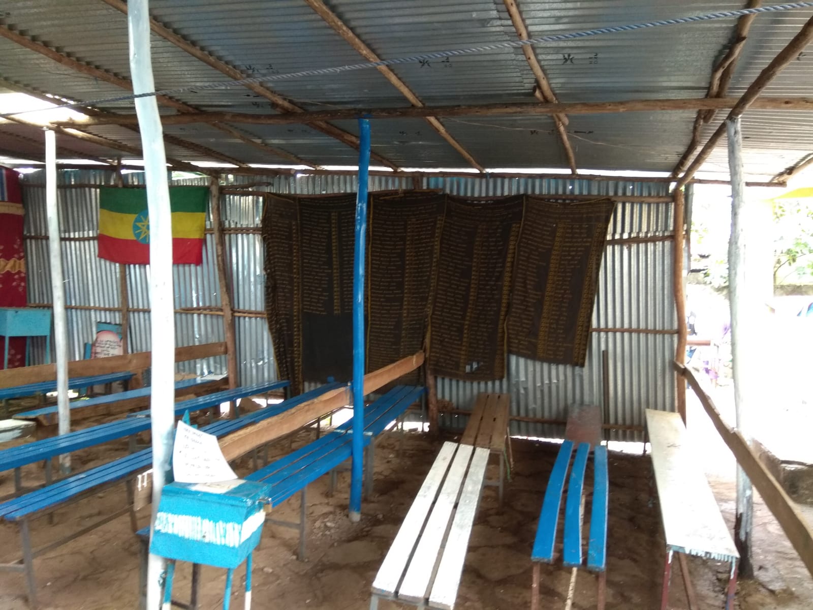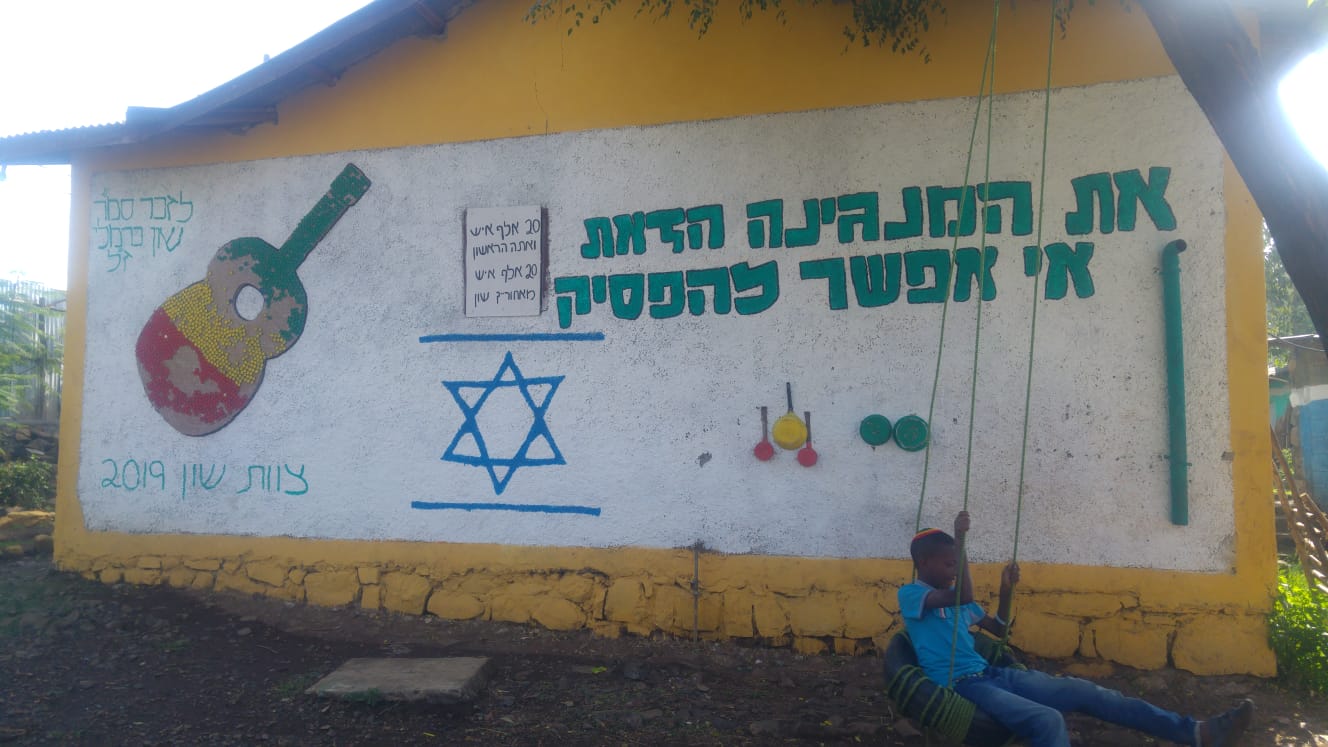← להראות תמונות- בית הכנסת ובו קיר שמוסיפים כל שנה את שמות הנפטרים שלא זכו לעלות, סניף בני עקיבא באתיופיה.