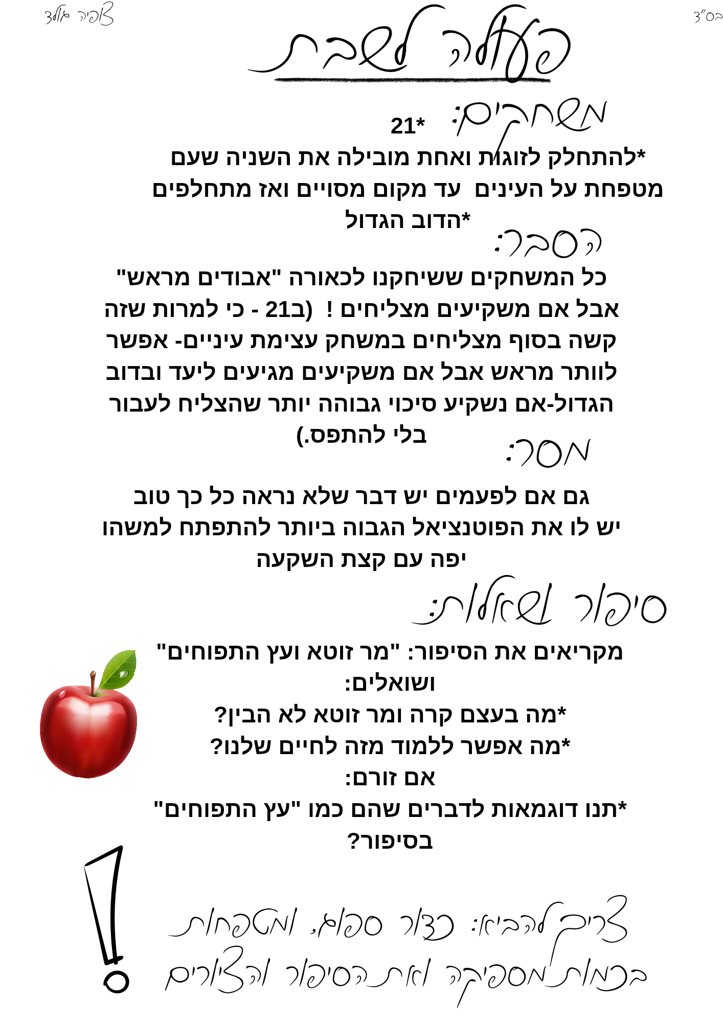 אם זורם: -תנו דוגמאות לדברים שהם כמו "עץ התפוחים" בסיפור?