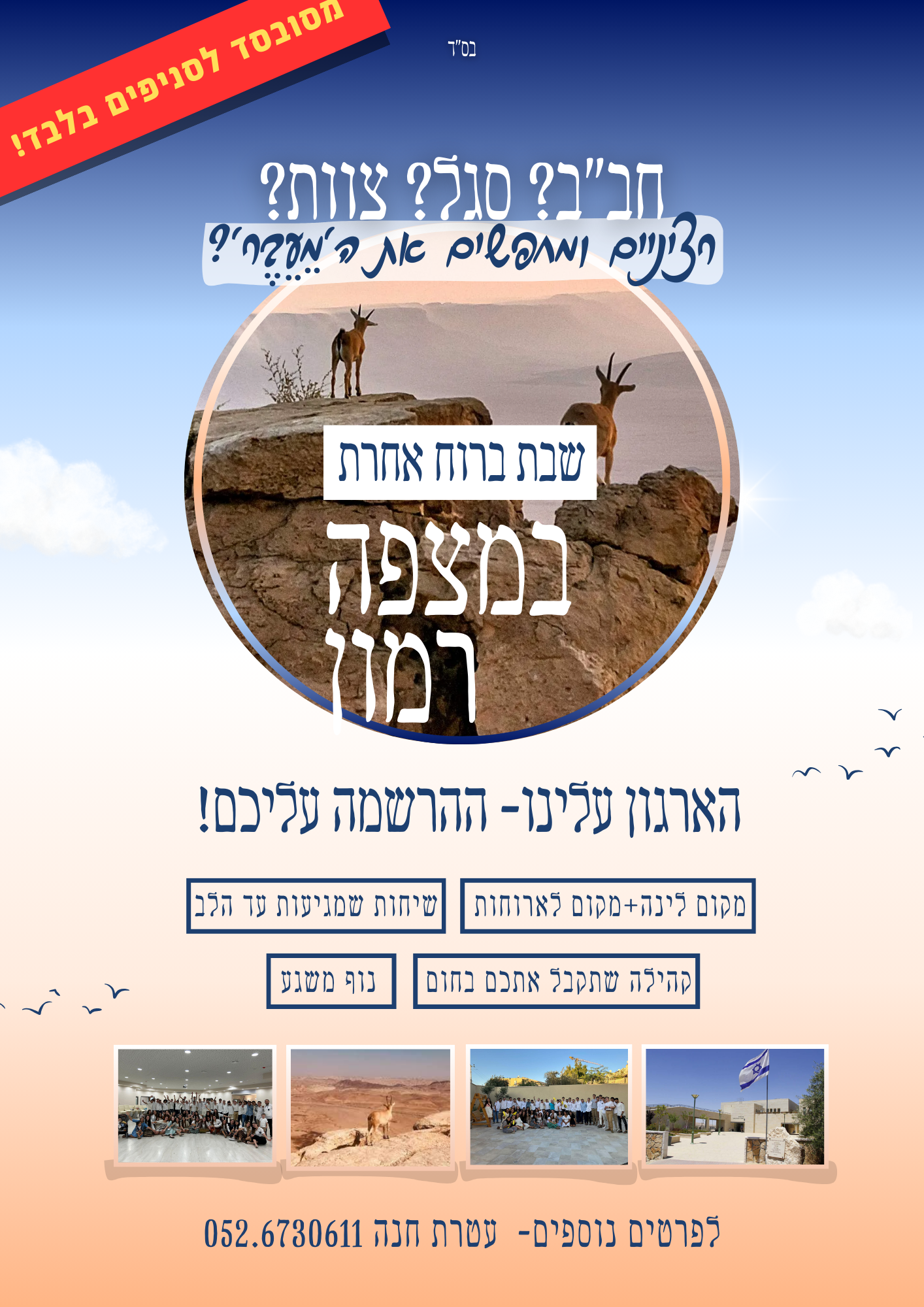 נוף מדהים, אווירה מרוממת, ושיחות שמגיעות עד הלב!